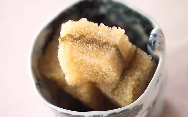 コリコリだけでなく、プチプチとした食感も同時に楽しめるのは、子持ちコンブならでは。美味しく食べるコツは、しっかり塩抜きをして、つけダレに1〜2日漬けること。やや手間がかかりますが、贅沢な味わいに仕上がりますよ。おもてなしやお正月にもぴったりです。