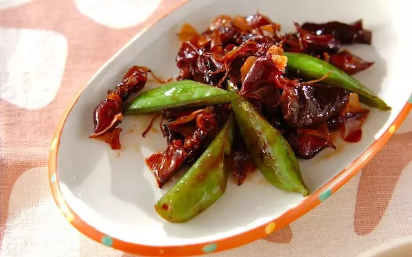 ホタルイカの旨みたっぷりの炒め物です。キクラゲのコリコリ食感が小気味良いアクセントに。スナップエンドウの甘みも堪能できます。食感があるものが食べたい、と思ったら、ぜひお試しを。