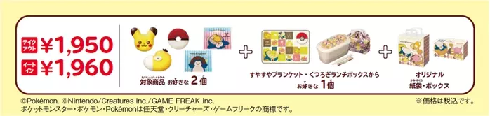 グッズコレクションには、ブランケットかお弁当箱が付いた「グッズセット」、おさんぽポーチが付いた「おこさまグッズセット」が