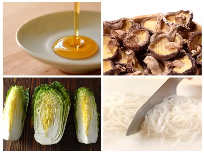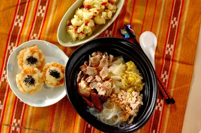ピェンロー鍋は、干しシイタケの戻し汁で白菜、肉類、春雨を煮込んでゴマ油をかけたシンプルな鍋のこと。味付けは特にせず、具材の旨味だけで作ります。