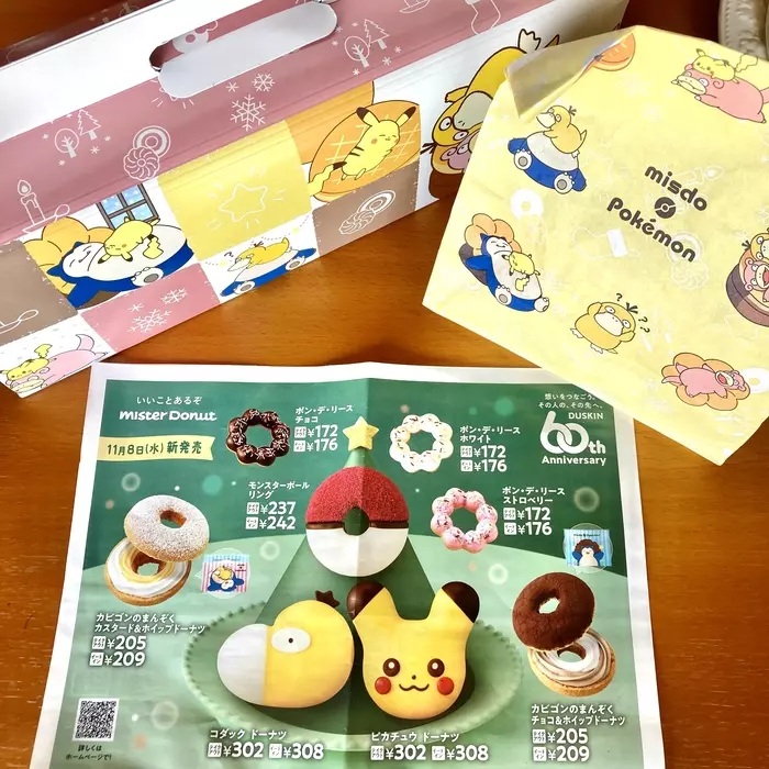 ドーナツはポケモンのカワイイ箱、紙袋に入れてくれる!