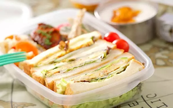 カラフルな野菜をたっぷり入れる厚焼き卵のサンドイッチです。パプリカやズッキーニの色が映えて、切ったときの断面もキレイ。ハムやサラダ菜も一緒にはさんで、ボリュームも満点です。晴れた日のピクニックランチにもぴったり。
