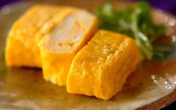 シラスとミツバを加える、色どりの良い巻き玉子です。シラスの塩気がほど良いアクセントに。ミツバの香りも効いていて美味しいですよ。口に入れるとじんわりとだしの旨みが広がり、幸せな気分になりそうですね。