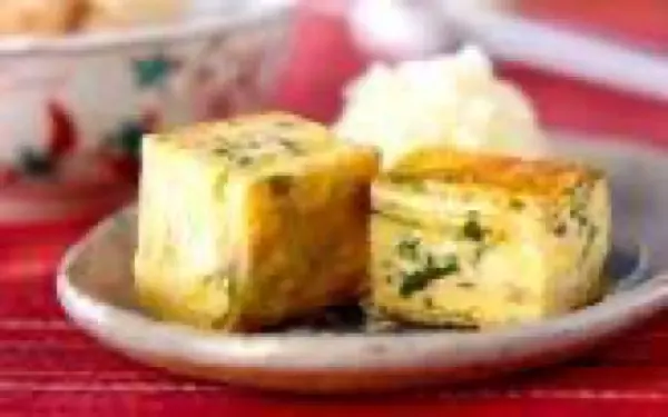 たっぷりのニラを使う、栄養豊富な厚焼き卵です。ニラはゴマ油で炒めてから加えるので、香ばしく仕上がります。シラス干しの塩気ともよく合いますよ。緑色が鮮やかで、具だくさんなので、お弁当のおかずにもおすすめです。