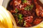 独特の渋みが特徴の赤ワインは肉の煮込み料理によく合います。鶏手羽元を焼いてから、赤ワインでじっくり煮込むとレストランのような本格的な味わいに。ニンニクの香りとベーコンの旨みも抜群の美味しさです。カリッと焼いたバゲットを添えていただきましょう。