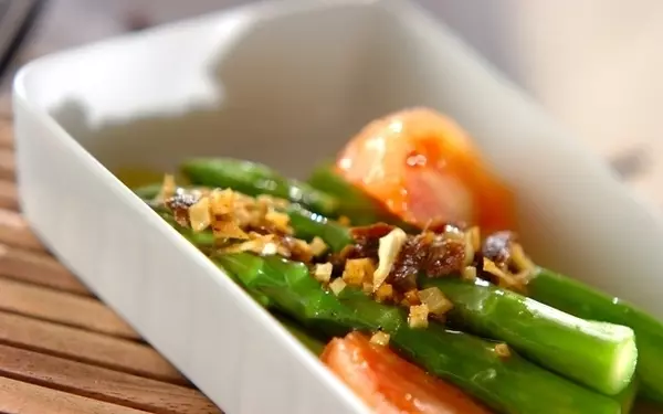 アンチョビの塩気と風味は、ワインやシャンパンと好相性。そのままでは塩気が強すぎるため、ソースにするのがベターです。茹でたアスパラガスと湯むきしたトマトにかけるとクリスマスカラーになり、パーティーにぴったり。