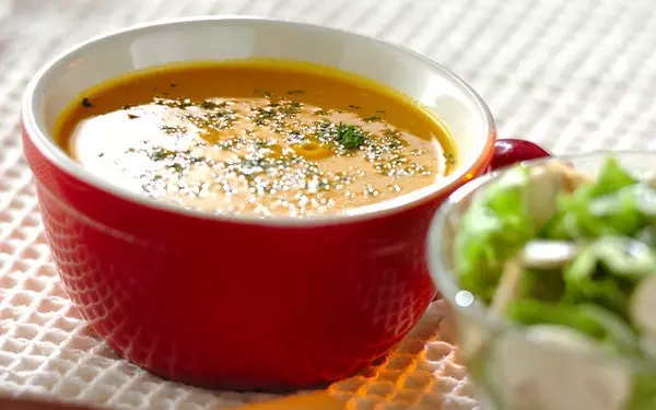 ポタージュスープをあっさり食べたいときは、牛乳や生クリームを使わないレシピがイチオシです。やわらかく煮たカボチャをミキサーにかけると、自然なとろみがついて口当たりがなめらか。カボチャの甘みがやさしく、ホッとしますよ。