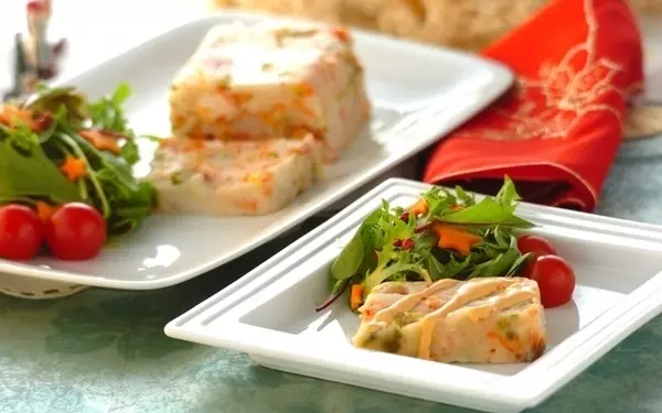 本格的なテリーヌを手作りしてみませんか? ホタテや生クリーム、マッシュポテトなどで作ったムースにエビやスモークサーモンを入れる豪華な一品。低温で湯せん焼きすることで、しっとり仕上がりますよ。ソースはエビの殻から作ったアメリカンソースで濃厚に。缶詰を使うため、ソースは簡単に完成するのがポイントです。