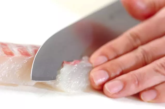 1. ソースが絡みやすくなるように食材を薄く切る