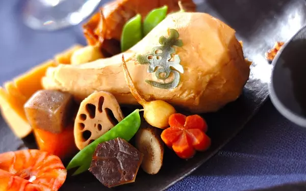 煮しめは、具材を油で炒めずに煮るのが特徴。色鮮やかな金時ニンジンやレンコンなどを飾り切りにすると見栄えが良く、お正月にぴったりな見た目に仕上がります。味付けの決め手は、棒ダラの煮汁。しっかりとした旨みが野菜にしみ込みます。