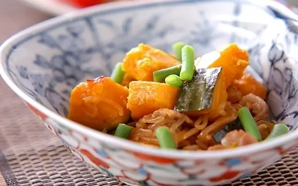 薄切りの豚バラ肉とカボチャで作る筑前煮は、やさしい甘さが引き立つ一品です。カボチャは先に炒め、表面を油でコーティングすると崩れにくくなりますよ。豚肉と相性が良いショウガを加えることで、臭みがなくすっきりとした筑前煮に仕上がります。