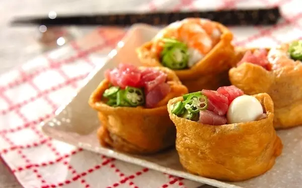 彩りにこだわったそばいなりは、大晦日のディナーに最適です。マグロとエビの赤、卵の黄色、オクラの緑が華やかで、年末気分を盛り上げてくれますよ。おもてなしにもぴったり。良い年を迎えられそうな一品ですね。