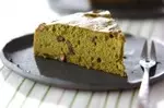 ゆで小豆をたっぷり入れる抹茶ケーキです。ケーキ生地の材料は卵白・グラニュー糖・薄力粉と少ないのがポイント。卵白を角が立つまでしっかり泡立てるため、ふわふわの生地になりますよ。和皿に盛り付けて、緑茶と一緒にいただきましょう。