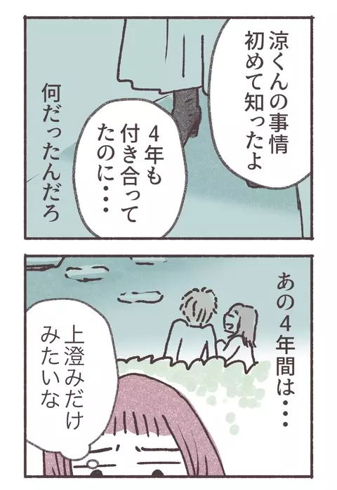 よくわからない理由で元カレの涼から別れを告げられ悲しみに暮れる雪子。傷ついてもいいから本当の別れの理由が知りたいと思い、もらったクッキーの型を返すという名目で涼の家に向かいました。そこで出会ったのは涼の母親。家を売って祖母を施設に入れる件で涼と揉めていました。母親が帰りふたりきりになった雪子は別れの理由を聞き出せず、思わず涼に母親との関係について聞きます。すると涼は、母親には4歳の時に捨てられたと話すのでした。