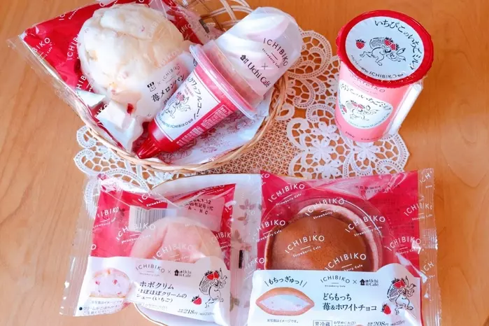 たくさんのコラボ商品の中から、今回は「Uchi Café×ICHIBIKO どらもっち 苺&ホワイトチョコ」「Uchi Café×ICHIBIKO ホボクリム ‐ほぼほぼクリームのシュー(いちご)‐」「ICHIBIKO いちびこのいちごミルク 190g」「Uchi Café×ICHIBIKO いちごミルクワッフルコーン」「ICHIBIKO 苺メロンパン」の5品をチョイス!
