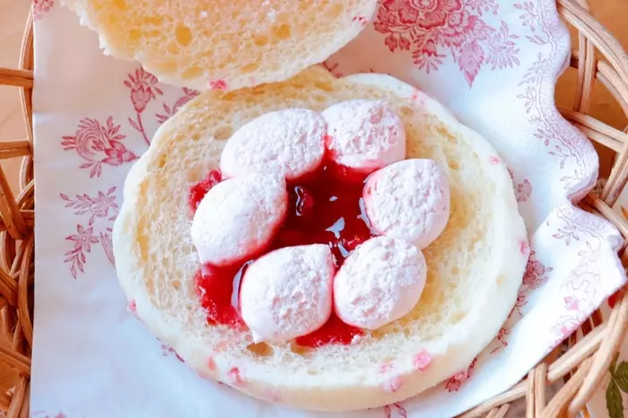 私よりメロンパンが好きな夫と半分こしたら「なんか、やかましいなぁ(関西弁でごちゃごちゃしている)」と(笑)「メロンパンなのに、なんでいちご?」と言いながらもあっという間に完食しました。スイーツ感覚で食べるメロンパンだと思いました。