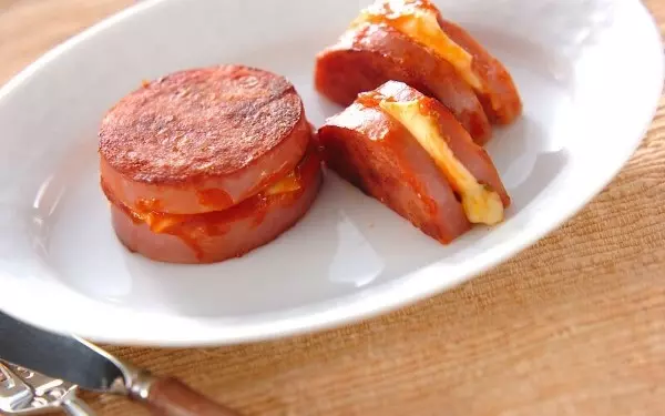 太めの魚肉ソーセージにスライスチーズをはさんで焼くだけ。生焼けの心配がなく、両面こんがり焼き目がついたらOKです。外はこんがり、中はとろ~り食感がたまりません。子どもも喜ぶこと間違いなし!