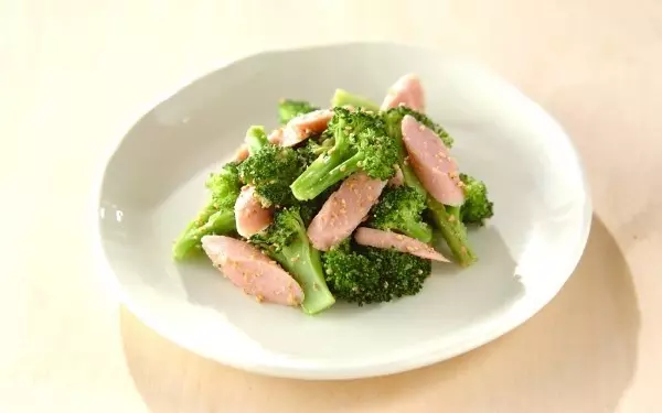 電子レンジで1品完成! 魚肉ソーセージの旨みとブロッコリーの歯ごたえのコラボがくせになります。白ゴマの風味とマイルドな酸味がアクセントになり、さっぱりと食べられますよ。色合いもキレイでお弁当にもおすすめです。