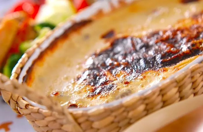 たっぷりのキノコの風味とエシャロットの香りが大人味のグラタンです。ホワイトソースはブランデーで芳醇な香りとコクをプラスし、より味わい深い仕上がりに。白ワインやシャンパンと相性の良い一品です。ご飯にかけたり、パンに添えたりしても◎。