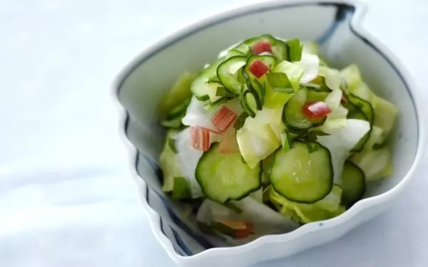 緑が映える浅漬けは、シャキッとした食感が特徴。味付けは、白だしに酢を加えてさっぱり仕上げるのがポイントです。サラダ感覚で食べられるうえ、野菜を塩もみすることでカサが減ってたくさん摂れるのも魅力。箸休めや、お弁当の隙間おかずにも重宝しますよ。