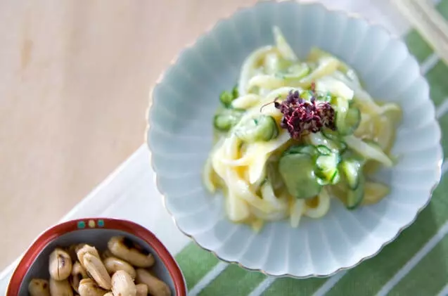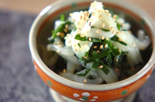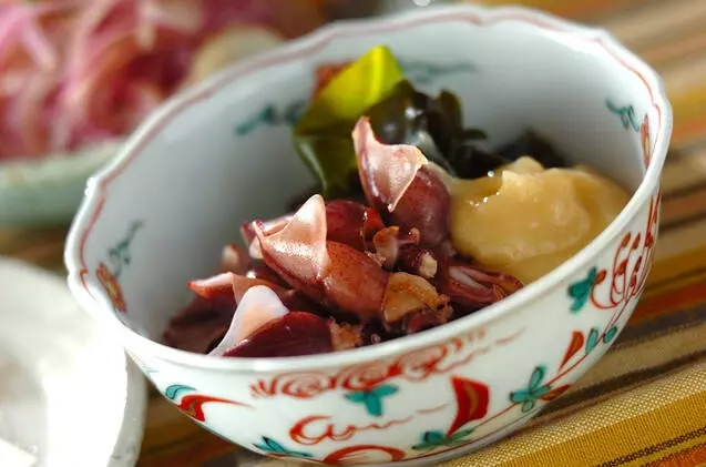 白みそ、甘酢、からしで作る酢みそにユズコショウをプラスしました。イカはあらかじめカットされているイカそうめんを使うと手早く作れます。ちらし寿司のお供にも合うので、ひな祭りにもオススメです。