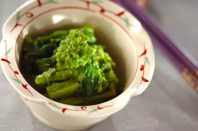 ほろ苦さが印象的な春の訪れを告げる菜の花を、からし入りの酢みそで和えました。苦いみと甘辛さでお酒が進みます。ちらし寿司を相性が良い副菜ですよ。