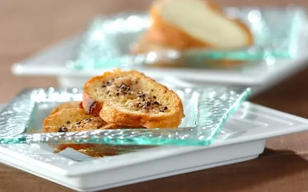 ほろ苦いカプチーノラスクと甘いホワイトチョコラスクの2種類のラスク。フランスパンをカリカリになるまでオーブンで焼く際、フランスパンを出す2分ほど前にホワイトチョコもオーブンに入れれば、手間をかけずに作れます。硬くなってしまったフランスパンの救済にも◎。