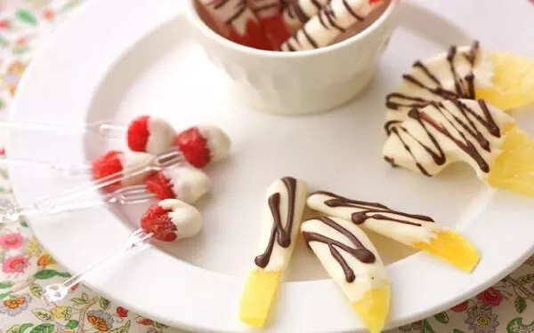 フレッシュなイチゴに溶かしたホワイトチョコをかけるだけで、かわいいスイーツに! ミルクチョコを使うよりも、白さが際立って華やかな雰囲気ですね。甘酸っぱいイチゴと、甘くてミルキーなホワイトチョコの絶妙なハーモニーが楽しめます。