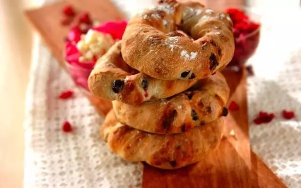 ドライクランベリーとホワイトチョコをたっぷり練り込む、ねじりドーナツ型のパン。食べ応えのあるさっくりしたパン生地は、おやつだけでなく食事にもぴったり。酸味と甘みのバランスが絶妙で、ワインとのペアリングも最高です。