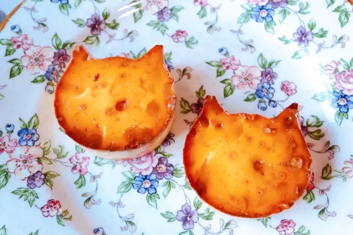 大きさは耳から測ると5cmありました。ねこねこチーズケーキではお馴染みのサイズ感です。実は私、東京・自由が丘に第一号店がオープンされた4年ほど前に「チーズケーキ」を食べたことがあるんです。でも、ベイクドチーズは初めてなのでとても楽しみです…!