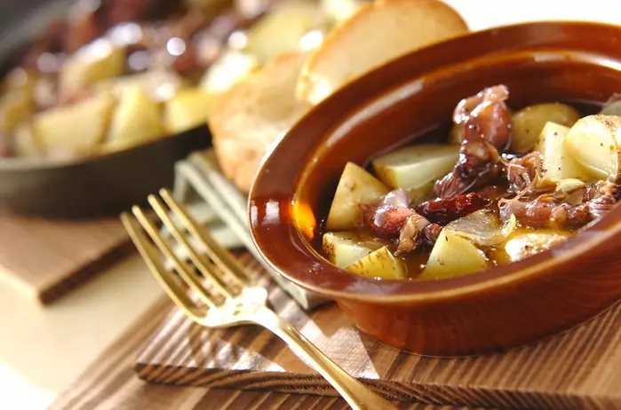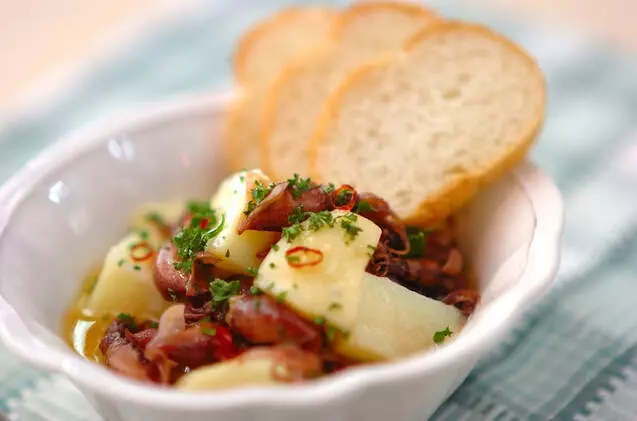 オリーブオイルでじっくり煮て、食材の旨みを引き出すアヒージョ。ホタルイカでもおいしく作れます。ジャガイモ入りで食べ応えありの一品は、プリプリ