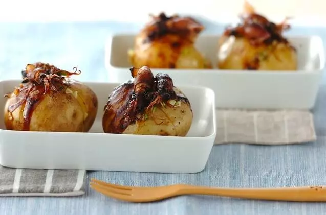 旬の食材同士は相性ばつぐん! 新ジャガにチョコっと乗せたホタルイカがかわいい一品は、甘い田楽みそで食べましょう。シンプルな味わいで素材の旨味が堪能できます。