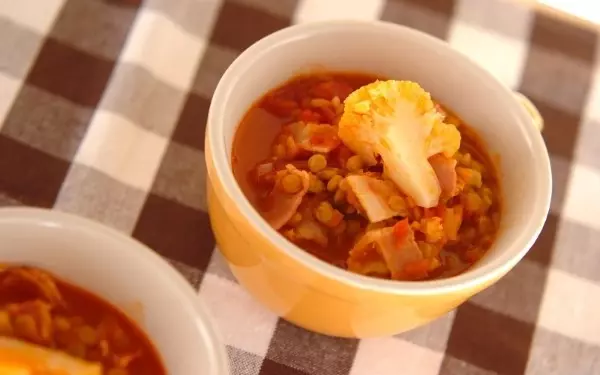 レンズ豆はほかの豆類よりも栄養価が高く、デトックスも期待できるスーパーフード。乾物ですが水で戻す手間がなく、調理も楽チンです。こちらのレシピはトマト缶で手軽に作れ、野菜も美味しくいただけます。高たんぱくなので、ダイエット食としてもGOOD。