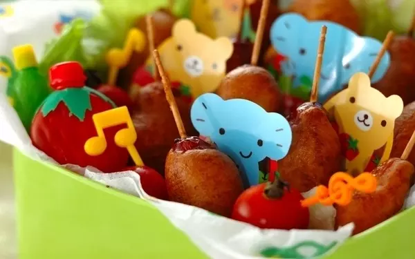 アメリカンドッグは子どもに喜ばれるお弁当おかず。ホットケーキミックスで生地を作り、ウインナーソーセージをくぐらせると、ふんわりジューシーに仕上がります。ほのかに甘く、どこか懐かしい味わいは大人にもおすすめですよ。