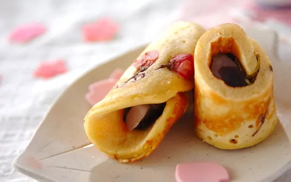 桜葉の香りと塩気が口いっぱいに広がるデザート。しっとりした生地で桜あんを包むため、上品な味わいです。生地を焼き過ぎると桜花の色が悪くなってしまうので、温度調整しやすいホットプレートを使うのがおすすめ。一度にたくさん焼けるメリットもありますよ。