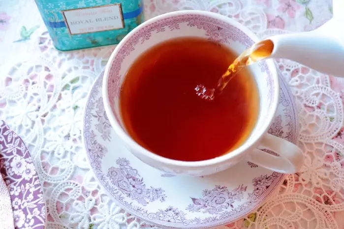 紅茶はフォートナムアンドメイソンの「Royal Blend ロイヤルブレンド」です。アッサムやセイロンの伝統的な紅茶なので、何にでも合う味わいです。もちろん「パンスイス」にも!1902年の夏に国王エドワード七世のために初めてブレンドされた「Royal Blend」は、蜂蜜のような風味が親しまれています。
