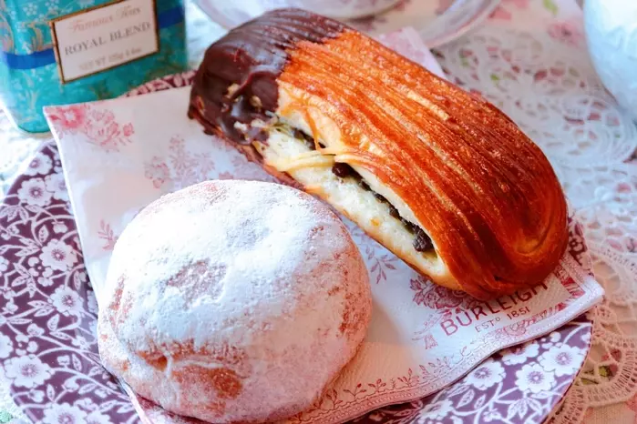 ペーパーナプキンもバーレイの物です。大皿に敷くと、パンがより見やすく撮れるかなと思いました。粉砂糖やチョコレートがコーティングされたものを食べるときに、巻いてしまえば手が汚れなくて便利です。