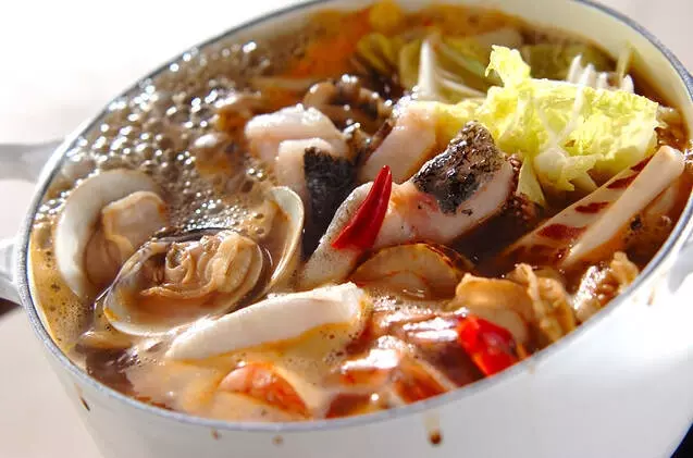 マンネリになりがちな鍋ですが、ナンプラーを効かせて魚介類をたっぷり入れたトムヤムクン風の鍋でちょぴり変化球はいかが?〆は春雨で。魚介の旨味とナンプラーは相性抜群!ぜひ試してくださいね。
