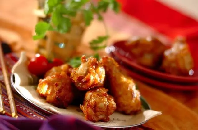 ココナッツミルクで下味漬けした鶏の手羽元は、食べた瞬間にエスニックな風味が口の中に広がります。甘辛味なので酸味の効いたトムヤムクンと合いますよ。