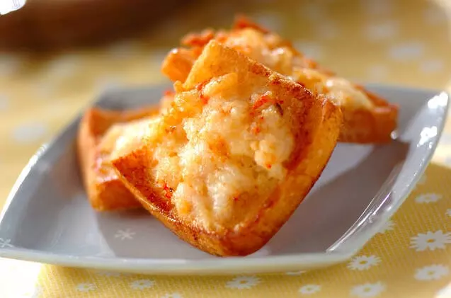 包丁で細かくたたいたエビをマヨネーズと和えて食パンにぬり、油でサッと揚げた大人も子どもにも人気の一品です。お好みでスイートチリソースをつけて食べてくださいね。