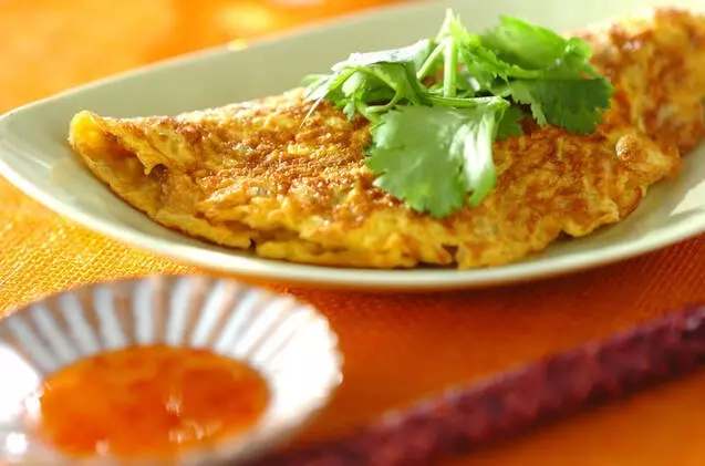 切り干し大根の煮物をアレンジした簡単オムレツ。スイートチリソースを添えたらたちまちエスニックな味わいになりますね。トムヤムクンの副菜に迷った時には簡単に作れるこのレシピはとってもオススメ。