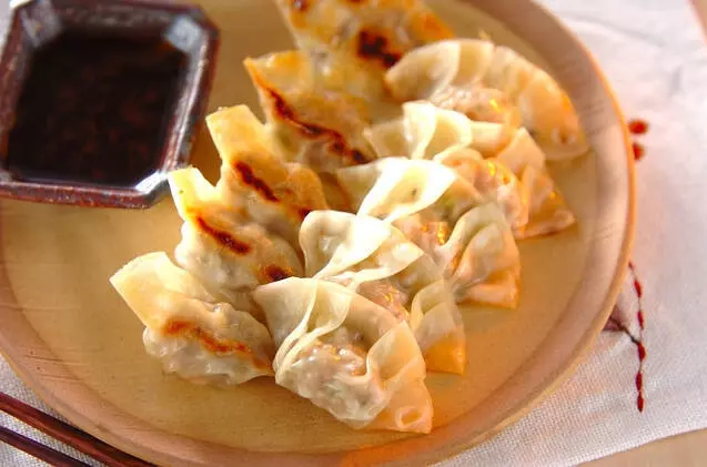 パクチーをたっぷり入れたエスニック風の餃子です。つけだれはナンプラー、酢、ラー油で食べてください。肉汁の旨味が感じられます。いつもの餃子にもおすすめの食べ方です。