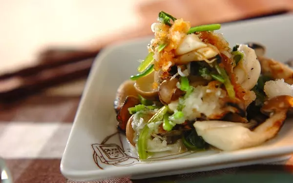 ポン酢しょうゆだけで味付けする、簡単な和え物。ホウレン草は茹で、シメジはトースターで香ばしく焼きます。さっぱり味の副菜は、揚げ物や炒め物などしっかり味の主菜に合わせると良いですよ。
