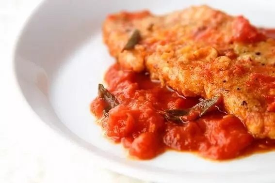 豚ロース肉を白ワインや水煮トマト缶で煮込みました。豚肉が大きい場合はカットしてもいいですね。生セージやドライセージの香りが良く、食欲もそそられます。ご飯にも合いますよ。