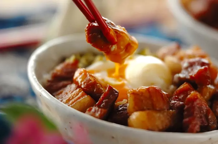 「ルーローハン」は、きざんだ豚肉をショウガやニンニク、八角などの香辛料と一緒に甘辛い煮汁で煮込み、ごはんにかけた料理のことをさします。漢字では「魯肉飯」と書き、台湾市民に愛され続けている屋台料理で、肉と一緒に卵や青菜や高菜などを乗せて食べるの一般的。台湾の代表的な丼のひとつです。