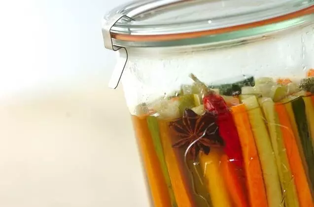 キュウリやセロリ、ニンジンなどを調味酢に漬けたピクルスです。ピクルス液に五香粉や八角を入れて中華風に仕上げます。ルーローハンの副菜や餃子やシューマイなどの副菜にもオススメ。野菜がたくさん手に入った時に作り置きすると便利です。