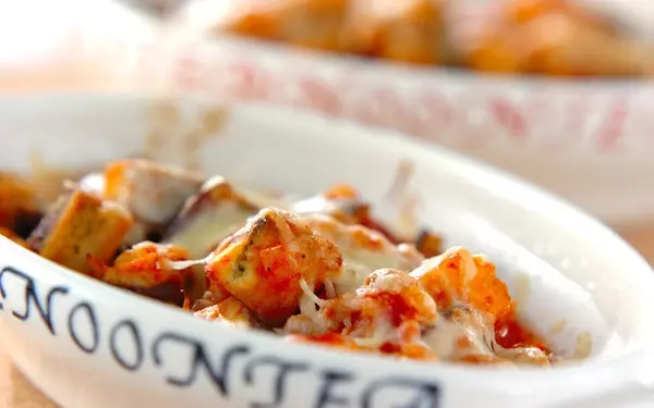 肉厚で甘みのある米ナスも、アジと同じく夏に旬を迎えます。こちらは、水煮トマト缶やニンニクなどで煮込んでからオーブンで焼く、手の込む一品です。アジに野菜の旨みや甘みが行き渡り、絶品。アツアツのチーズをたっぷりからめて召し上がりください。