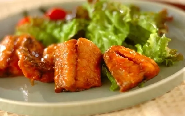 市販のゴマドレッシングのケチャップを混ぜ、揚げたアジにからめます。濃厚なソースで魚が苦手な子どもも食べやすいですよ。辛いのが好きな方は豆板醤を加えるアレンジもおすすめ。アジは中温でゆっくり揚げると身がパサつかずに仕上がります。