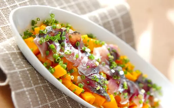 アジとマンゴーを組み合わせた、変わり種のマリネです。甘みの強いマンゴーと、アジの旨みが意外なほどよく合います。見た目が華やかでおもてなしにも良いですね。イタリアンやフレンチドレッシングをかけてもOKですよ。