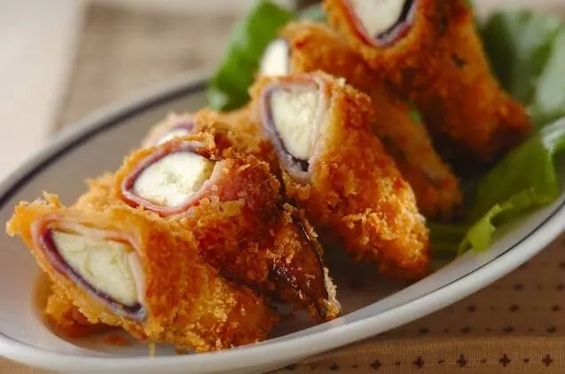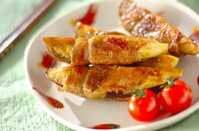 ナスをベーコンで巻いてフライにした食べ応え満点のレシピです。ベーコンを巻く中心にマヨネーズを薄くぬり、ナスに巻きつけます。サクッとした食感から甘いナスがトロッとあふれるクセになる味わいです。